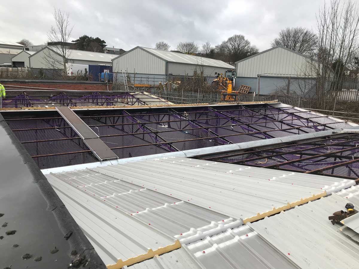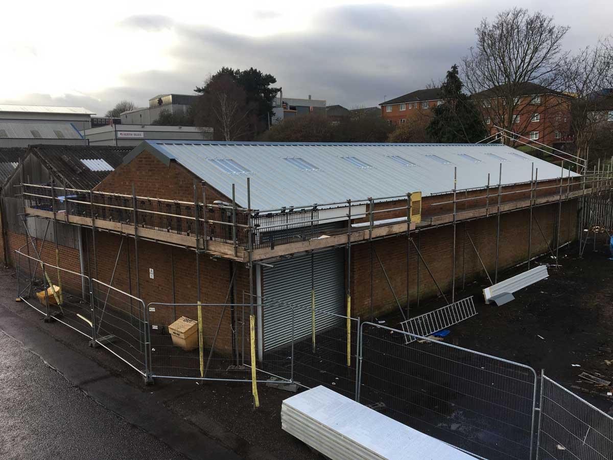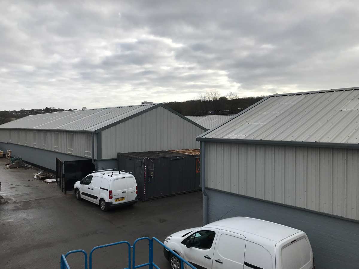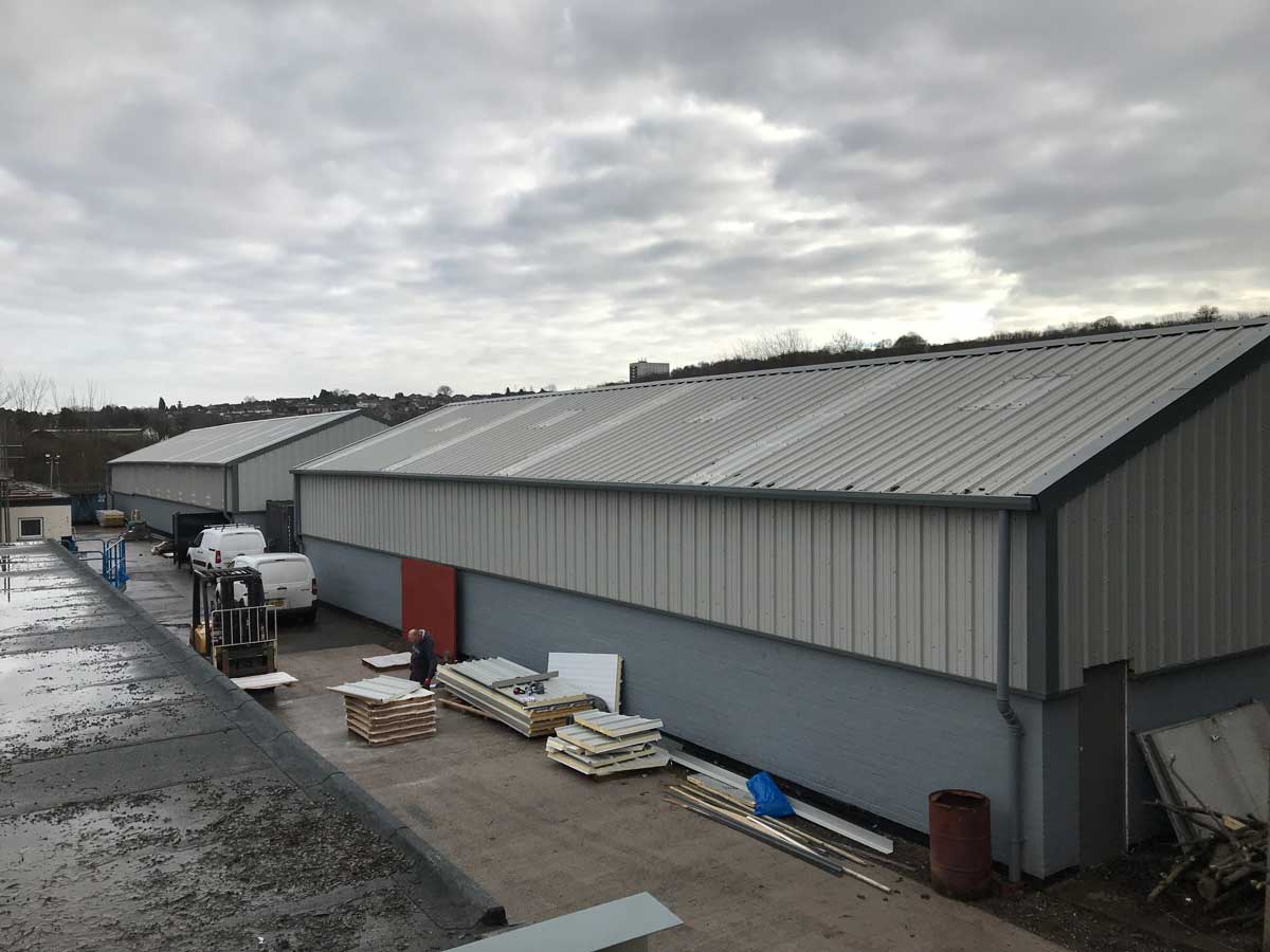 To completely strip 24 no. industrial units of existing big six fibre cement roof sheets / wall sheets. To supply and install new 80mm KSR1000 roof and wall composite panels.